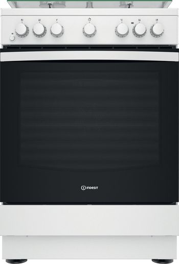 Caratteristiche di questa cucina a libera installazione 60 x 60 Indesit: 4 fuochi. Colore bianco. Alimentazione elettrica. Metodo di cottura convenzionale. 60 cm di larghezza.