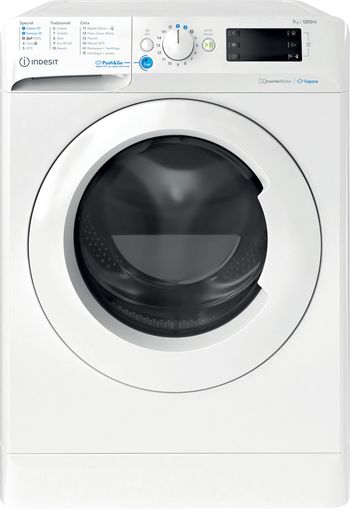 Caratteristiche di questa lavatrice a carica frontale a libera installazione Indesit: cestello spazioso da 7,0 kg. Classe energetica B. Centrifuga a 1200 giri al minuto, rapida ed efficiente. Colore bianco.